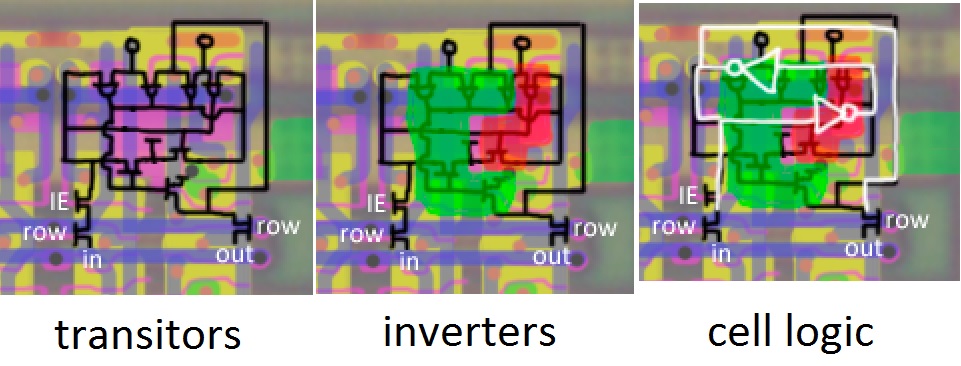 В раздел Скачать ( http://psxdev.ru/download) выложены склееные фотографии активного слоя PSX CPU. Исходные 9 ГБ ужались до 220 МБ Теперь работать со стандартными ячейками стало гораздо удобнее. Следующей задачей является идентификация всех ячеек, параллельно ведется подсчёт их количества. В результате всего массив данных ужмется ещё сильнее и составит каких-то 100 КБ текста (тип ячейки + координаты) из которого можно будет сгенерировать любой участок процессора. Пример идентификации ячеек можно посмотреть тут : http://psxdev.ru/files/IC103/psxcpu_active_03_06.svg (загружается не сразу!). Видно, что не все области хорошо просматриваются за пятнами грязи, эти участки мы восстановим потом, на базе фотографий М1 (которые тоже ещё предстоит сшить). PS. По стандартным ячейкам прогресс можно смотреть тут : http://wiki.psxdev.ru/index.php/CPU_CELLS