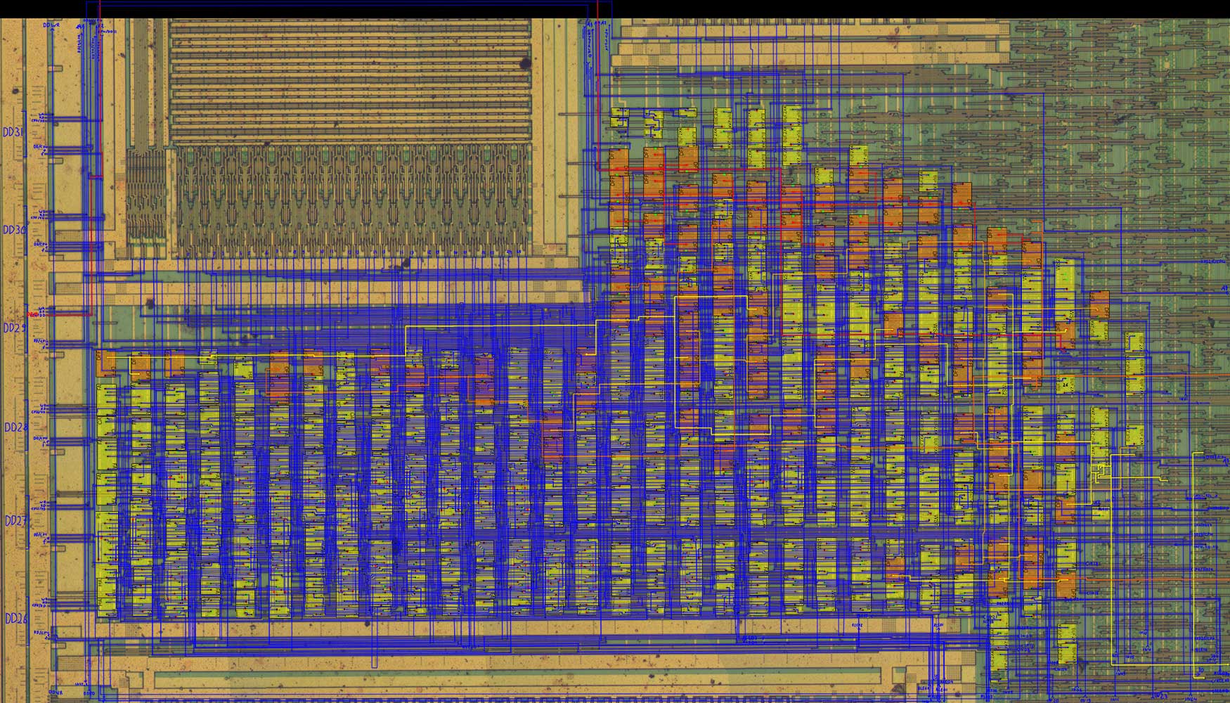 | Прошло уже 2 месяца с тех пор как я начал разбирать ячейки в MDEC угле чипа. Исследованная область сейчас примерно такая:  На данный момент происходит разбор схемы управления IDCT преобразованием: