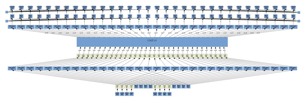 | Прошло уже 3 месяца с тех пор как я начал разбор своего куска 00, на котором расположен MDEC. Пришла пора показать насколько далеко я продвинулся. На данный момент весь фронт работ занимает 5 отдельных кусков жопегов, по которым я расставляю исследуемые оргом ячейки. Практически полностью удалось завершить IDCT преобразование и сейчас я направился вниз, к юниту 03 и 04, к участкам, которые видимо выполняют RLE. Итак, отчет оп датам: 1) За декабрь удалось сделать первый проход IDCT.  Кроме IDCT по схеме еще ползут линии для пинов данных. 2) Весь январь ушел на второй проход IDCT и на начало разбора контроля этим преобразованием.  Была сделана попытка просимулировать оба прохода умножения, но пока не особо удачная. Логическая схема IDCT представляет из себя что-то вроде этого  3) Февраль был проведен за попыткой симуляции контроля и дальнейшим его разбиранием. Очень много линий контроля уходят куда-то вдаль и пока их назначение остается неизвестным.  Сейчас я решил двинутся вниз и разобрать ячейки возле юнита 03, который пока не связан напрямую с MDEC, но я полагаю что он является частью RLE и скоро мы увидим как из него данные пойдут в IDCT.