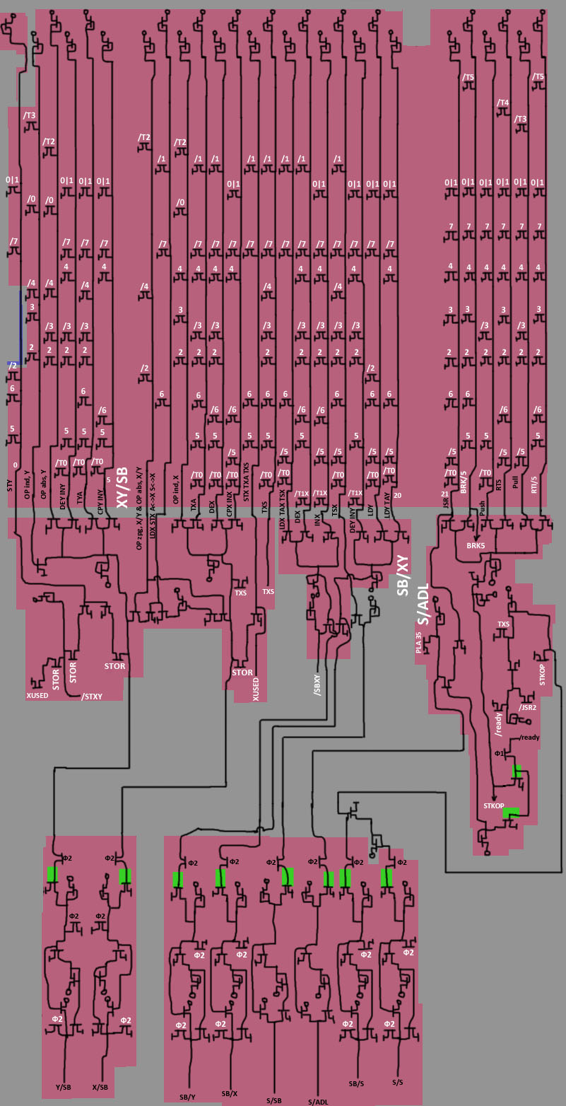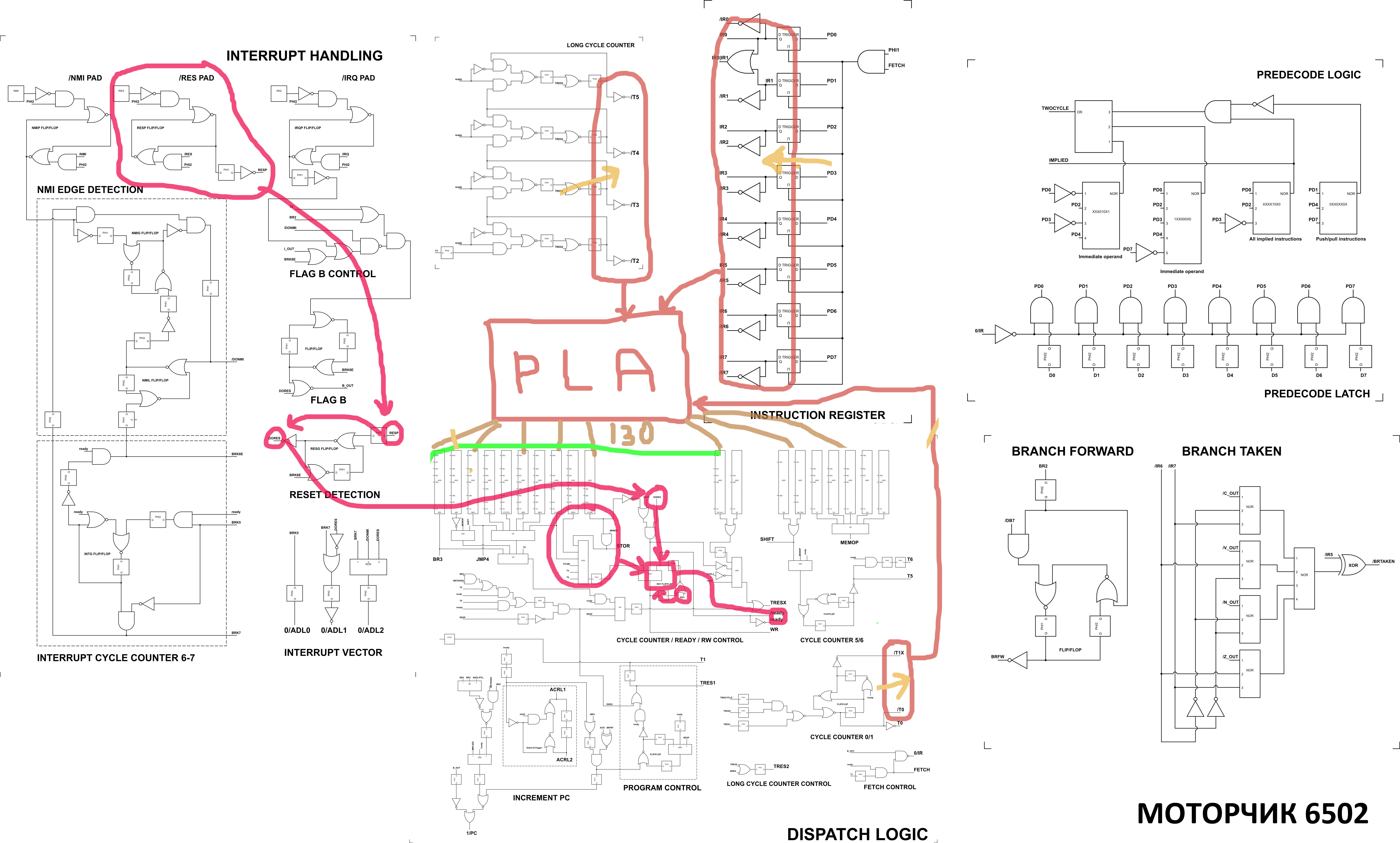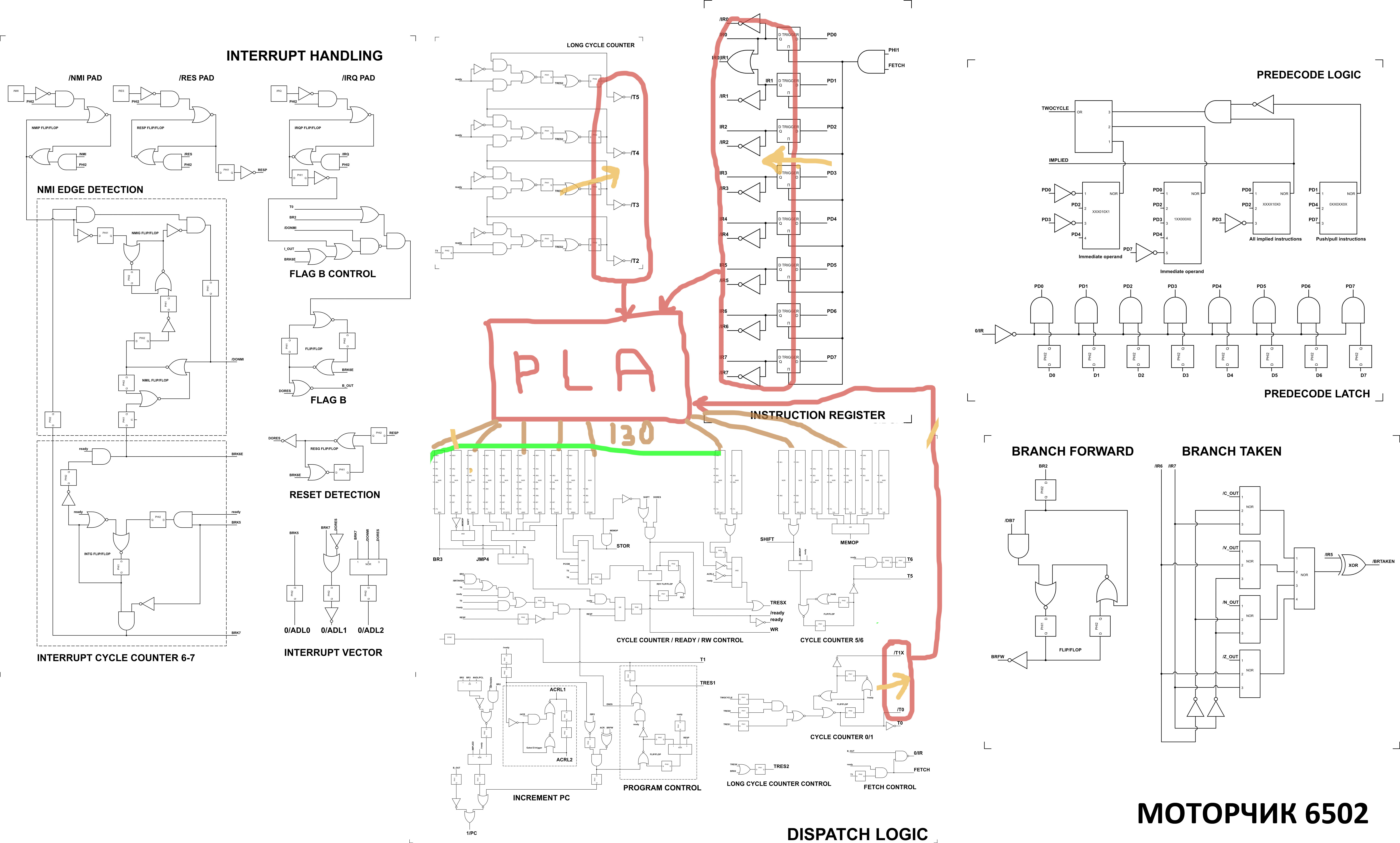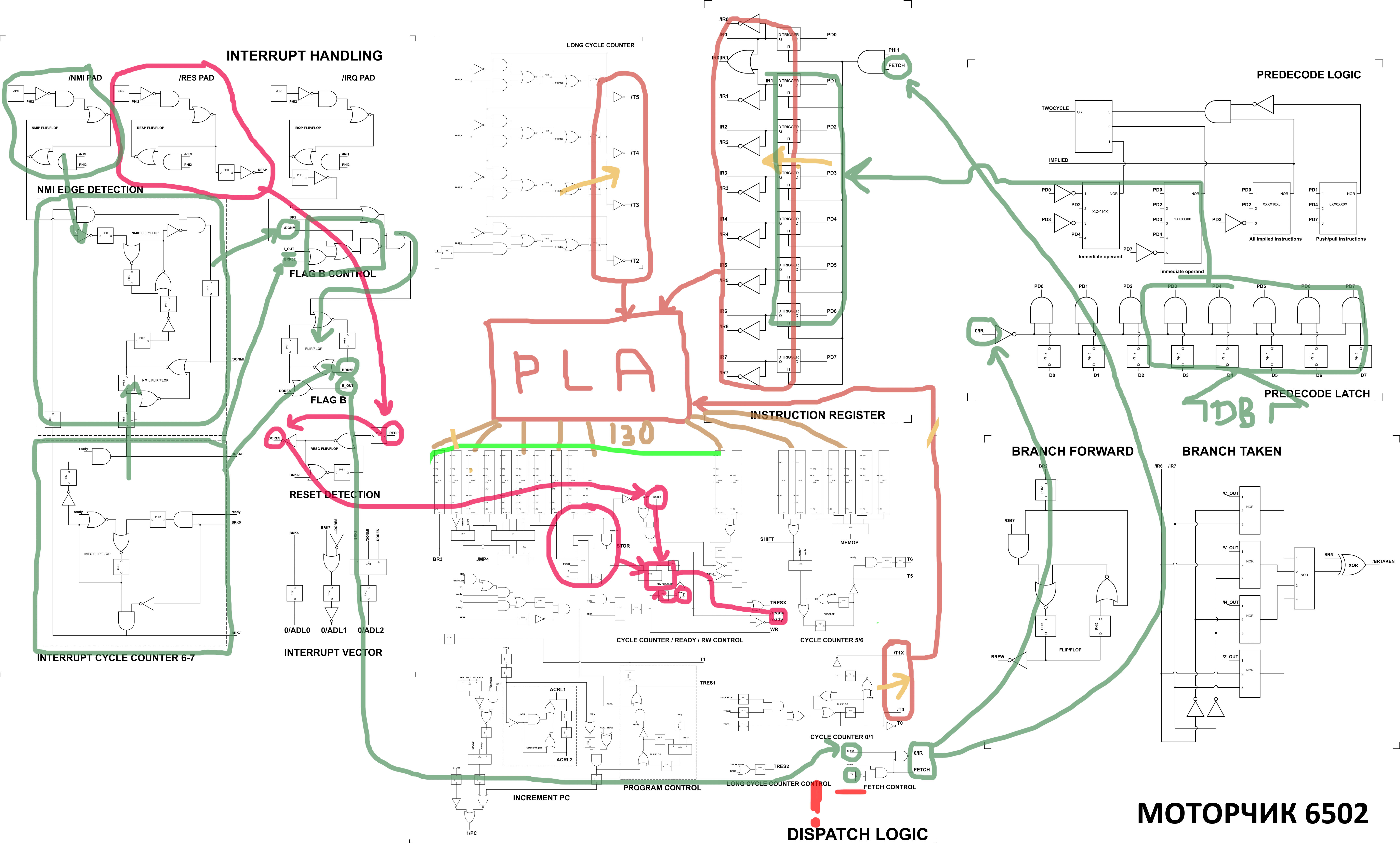 Совсем забыл выложить эпическую схему - верхняя часть 6502.