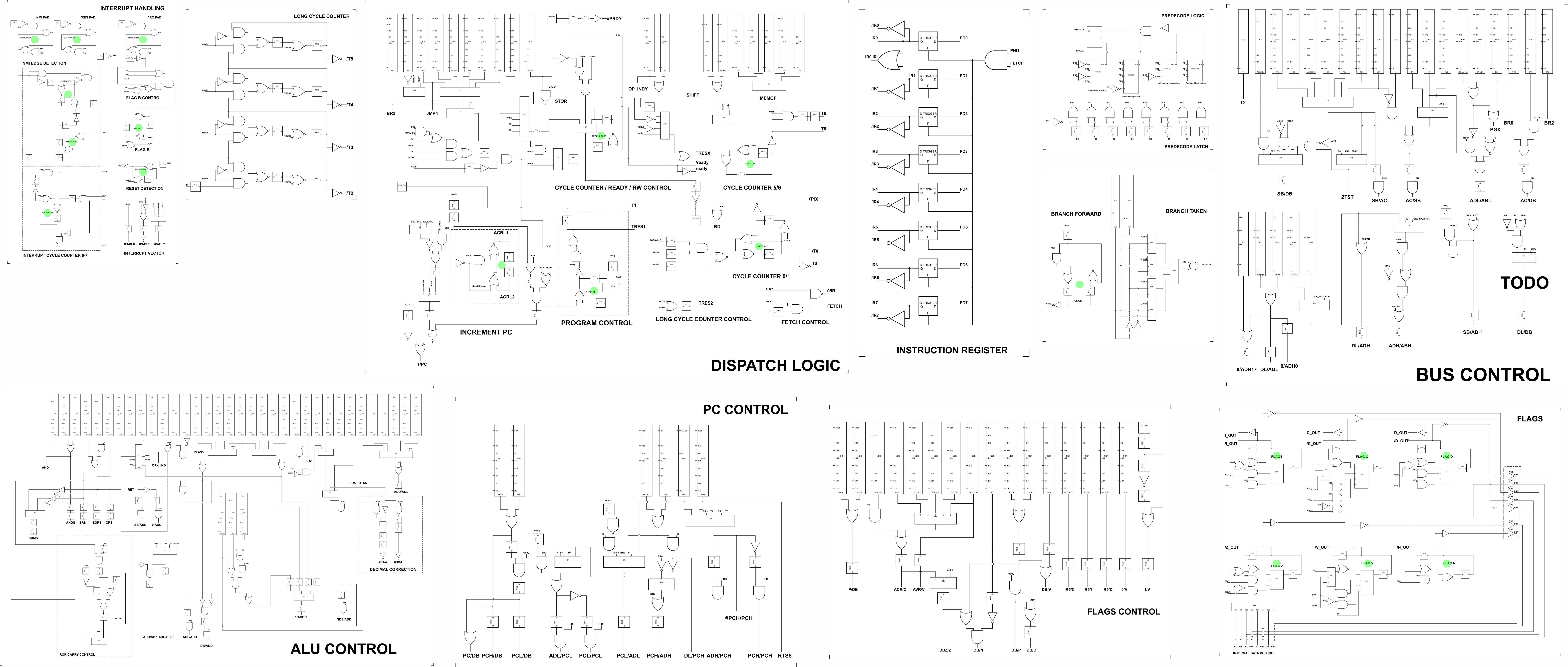 По 6502 сейчас на домашнем компе прорабатываю логику нижней части, очень туго идёт понимание 6502.. чем больше его изучаешь, тем замудреннее он становится, в отличии от примитивных счетчиков / регистров сдвига PPU и APU.