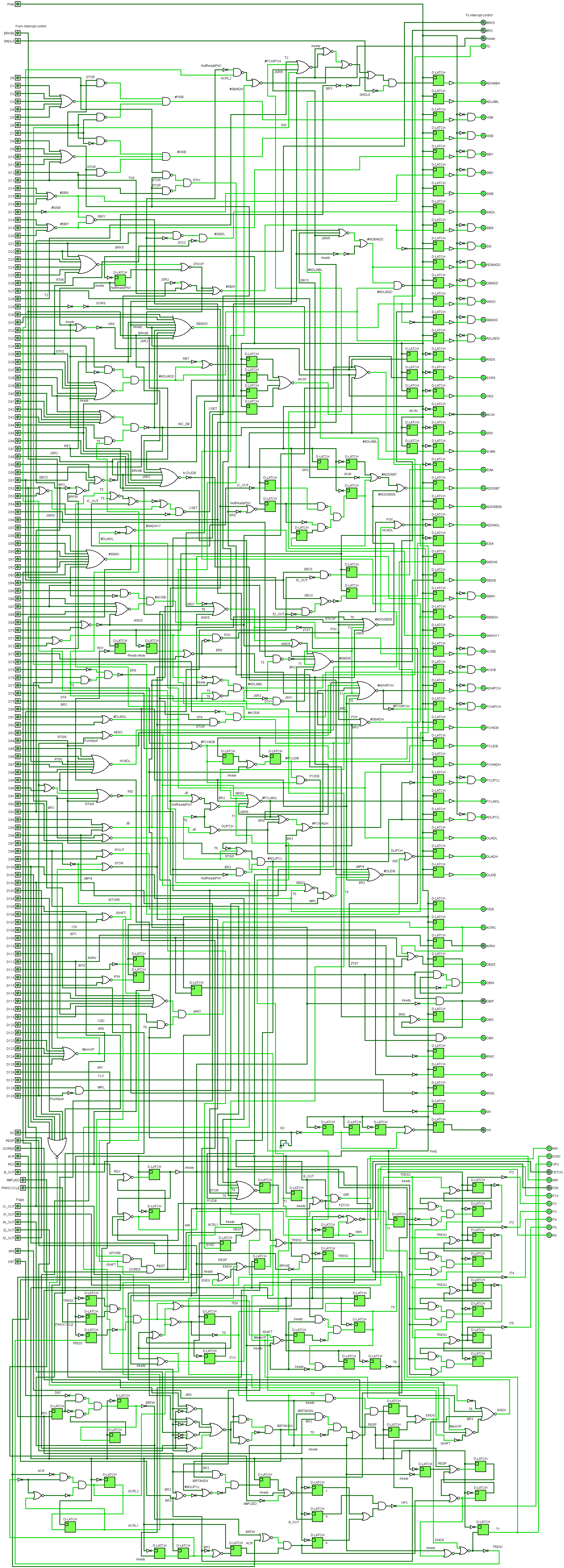 org писал(а): Нашёл у себя ещё одну ошибку - все D-LATCH по какой-то причине стали работать не по уровню, а по фронту  Поменял как надо, схема стала адекватно перебирать циклы, но почему-то застревает после исполнения одного опкода. WTF?! У тебя в схемах D-триггера срабатывают по уровню?
