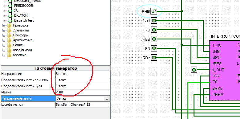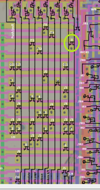 Нене.. в симуляторе 1 полу-такт длится одну итерацию. Чтобы там работал edge нужно выставить длительность одного полу-такта 2-4 итерации. Тогда edge будет схватываться. Естественно у меня вход не захватывался, потому что с одной итерацией на полу-такт это сделать невозможно) Я говорю про ПЛИС. Там должно нормально работать. Хотя с расколбасом входного сигнала может быть и не захватится как нужно) Один китаец по моим транзисторным схемам сделал PPU, у него DFF нормально по фронту работали, с его слов. T5 - это внутренний сигнал для рандомной логики. 5й цикл исполнения инструкций. Дело в том, что на декодер поступает только T0-T5, но некоторые инструкции выполняются и T5 и T6 циклов. Чтобы они срабатывали разработчики решили не запускать в декодер ещё линии, а просто сделать так, чтобы часть линий срабатывала на любой цикл (TX), но на выходе они уже обрезались когда нужно этими внутренними T5 и T6. Короче T5 это тоже самое что /T5, но только для некоторых линий декодера, которые срабатывают на любой цикл (TX) Кстати, с теми схемами старыми поаккуратннее) Там могут быть ошибки) -- 08 ноя 2014, 18:25 -- Да, кстати, есть ещё вики, можешь там полазить, наверняка на часть вопросов есть ответы) http://wiki.breaknes.com/6502
