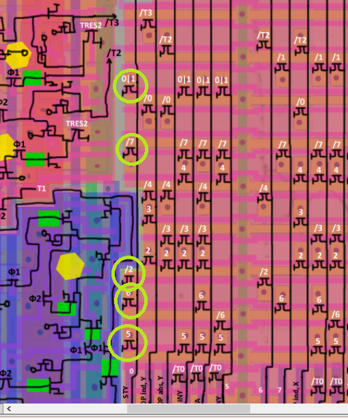org писал(а): И по уровню сейчас CMOS не работает, только edge. Хотя D-latch по идее можно сделать как DFF по posedge, должно работать идентично. Очень забавно это слышать от тебя после поста: Цитата: Нашёл у себя ещё одну ошибку - все D-LATCH по какой-то причине стали работать не по уровню, а по фронту  Поменял как надо, схема стала адекватно перебирать циклы, но почему-то застревает после исполнения одного опкода. В общем случае просто так взять и заменить нельзя. Если сигнал измениться после фронта у латча - он защелкнется, более того - этот сигнал пока уровень на защелке активен может колбаситься как угодно, сохранится только состояние на момент выключения. Ну, это если я правильно понял твое описание. Вопрос в студию: download/file.php?id=791&mode=viewhttp://breaknes.com/images/wys/c76cb0b8 ... b26fdf.jpgНа обоих изображениях есть T5. На обоих изображениях это выход. Что за фигня?