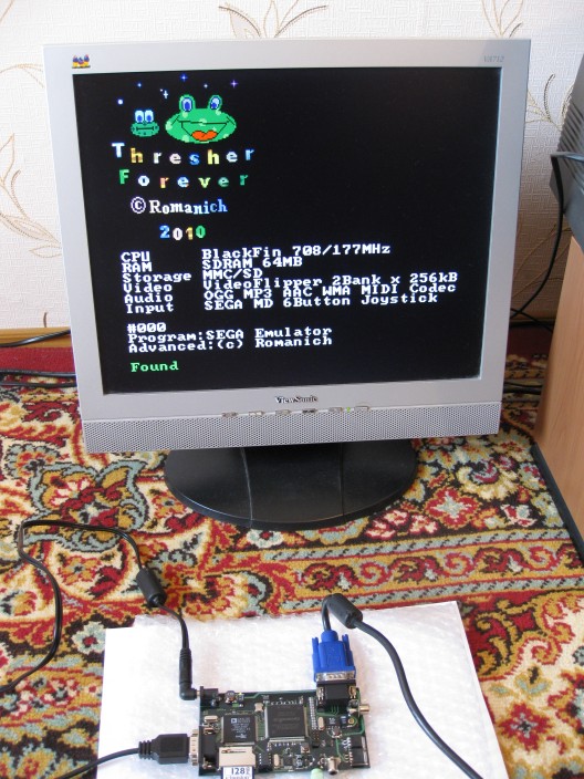 В игровой приставке Thresher Forever используется видеосистема под названием VideoFlipper. Специализированный видеоконтроллер на базе FPGA EP2C8 семейства Cyclone II. Имеет два банка (страницы) видеопамяти (по 256 kB каждый, организация памяти 128K x 16), что даёт по сравнению “обычными” видеоконтроллерами следующие