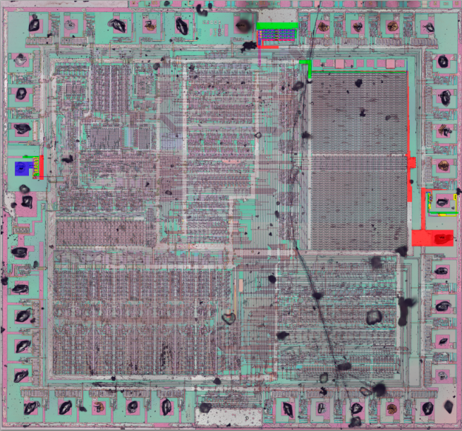 Очень интересно. Quietust сделал симулятор 2А03 на основе Visual6502 и послойных снимков 2А03, а вот с PPU проект заглох: фотографии сделаны, но организатор сказал, что заниматься слоями не будет. Вот так выглядит delayering Что касается 2А03/2С02: Я правильно понимаю, что нельзя расшифровать логику чипа, не сняв обязательно все его слои? Общей фотографии кристалла после декапа недостаточно и никакая кропотливая расшифровка не поможет? |