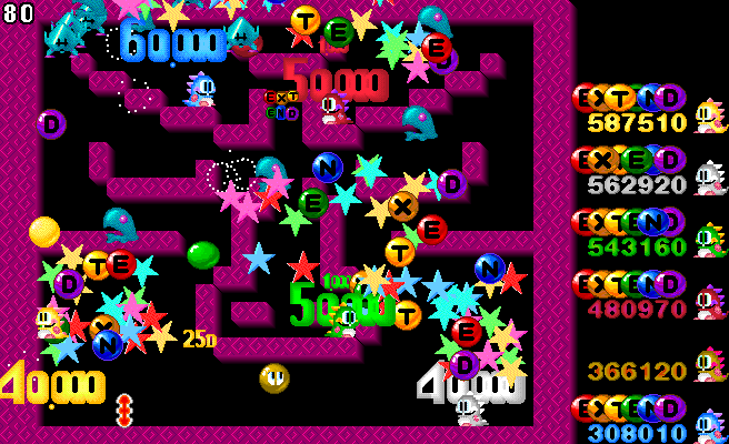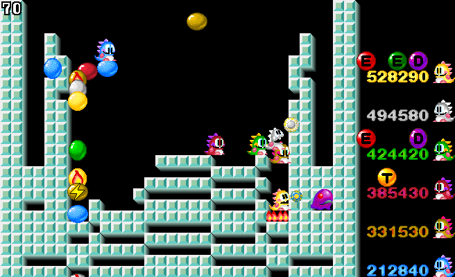 совершенно случайно нашёл эту игру для PC, основанную на моей любимой Bubble Bobble. идея абсолютно такая же, только добавлено много новых бонусов, и играть теперь можно